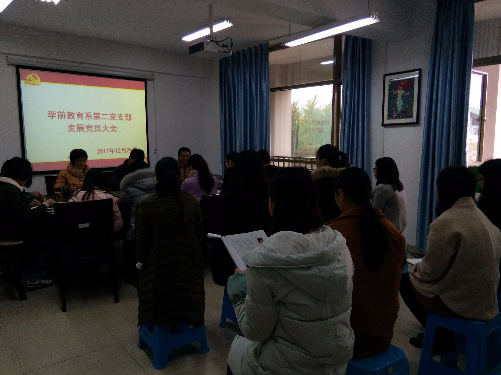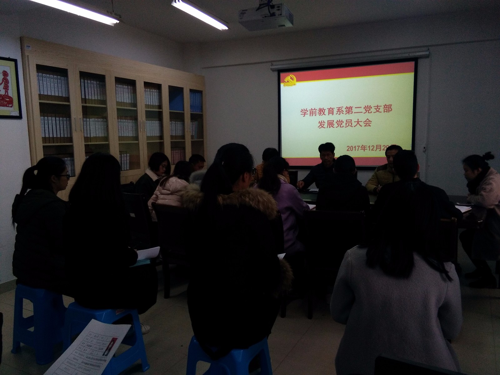 2017年12月29日上午,在行政楼204室,学前教育系第二党支部召开发展党员大会🤵🏼。党总支书记叶常明、党总支副书记张完英以及第二党支部全体党员和2015级、2016级学生发展对象参加了此次会议。会议由党总支副书记兼第二党支部书记邱海松副书记主持。