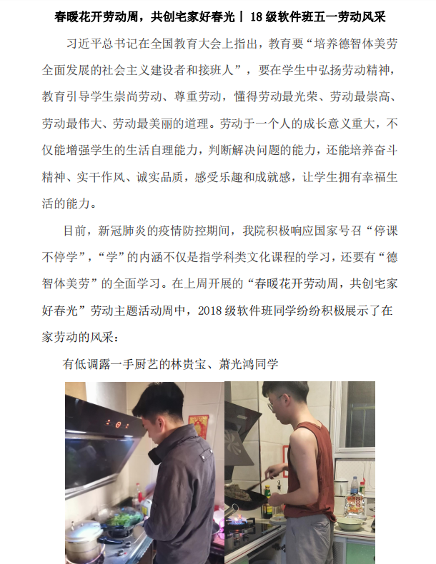 春暖花开劳动周,共创宅家好春光丨18级软件班五一劳动风采