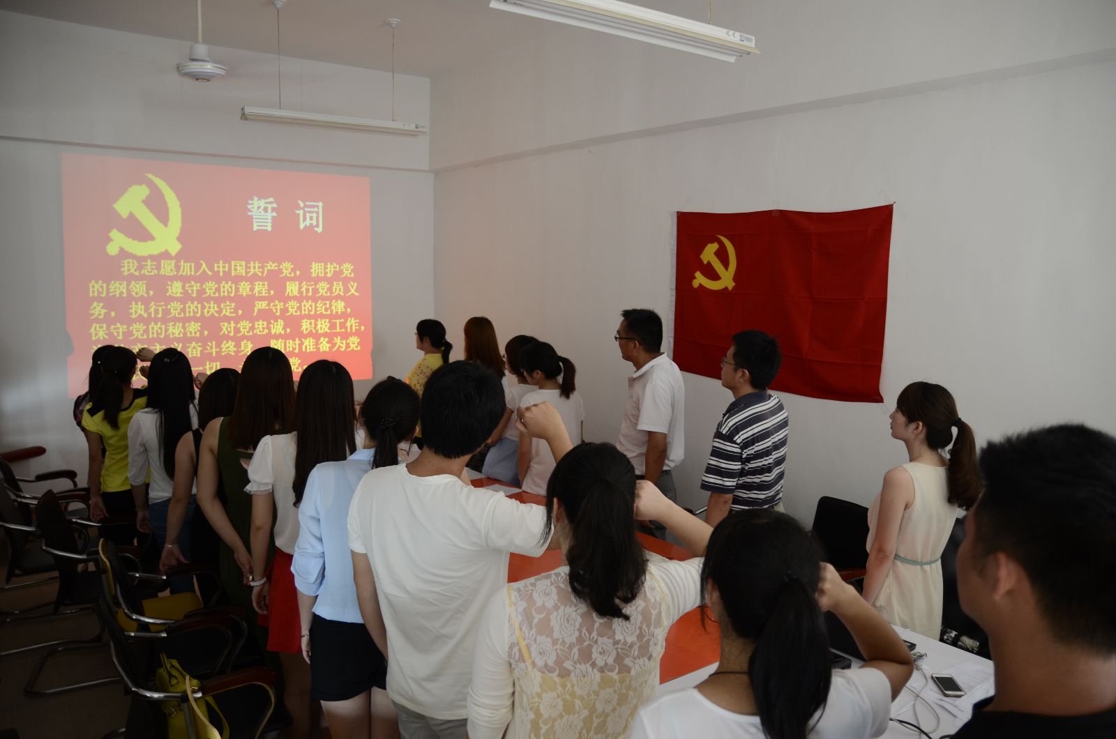 第二项会议议程会议按照接收预备党员大会的程序🚉,首先由发展对象分别宣读了《入党志愿书》,汇报自己对党的认识、入党动机、本人履历及需要向党组织说明的问题。然后由入党介绍人对其推荐的发展对象进行了全面评价🤍,并对其能否入党表明意见👱🏻。最后🙇🏼♂️,大会通过举手表决一致通过了危功衡、马祖汉、郑雅红等11位发展对象加入中国共产党,并进行了入党宣誓。