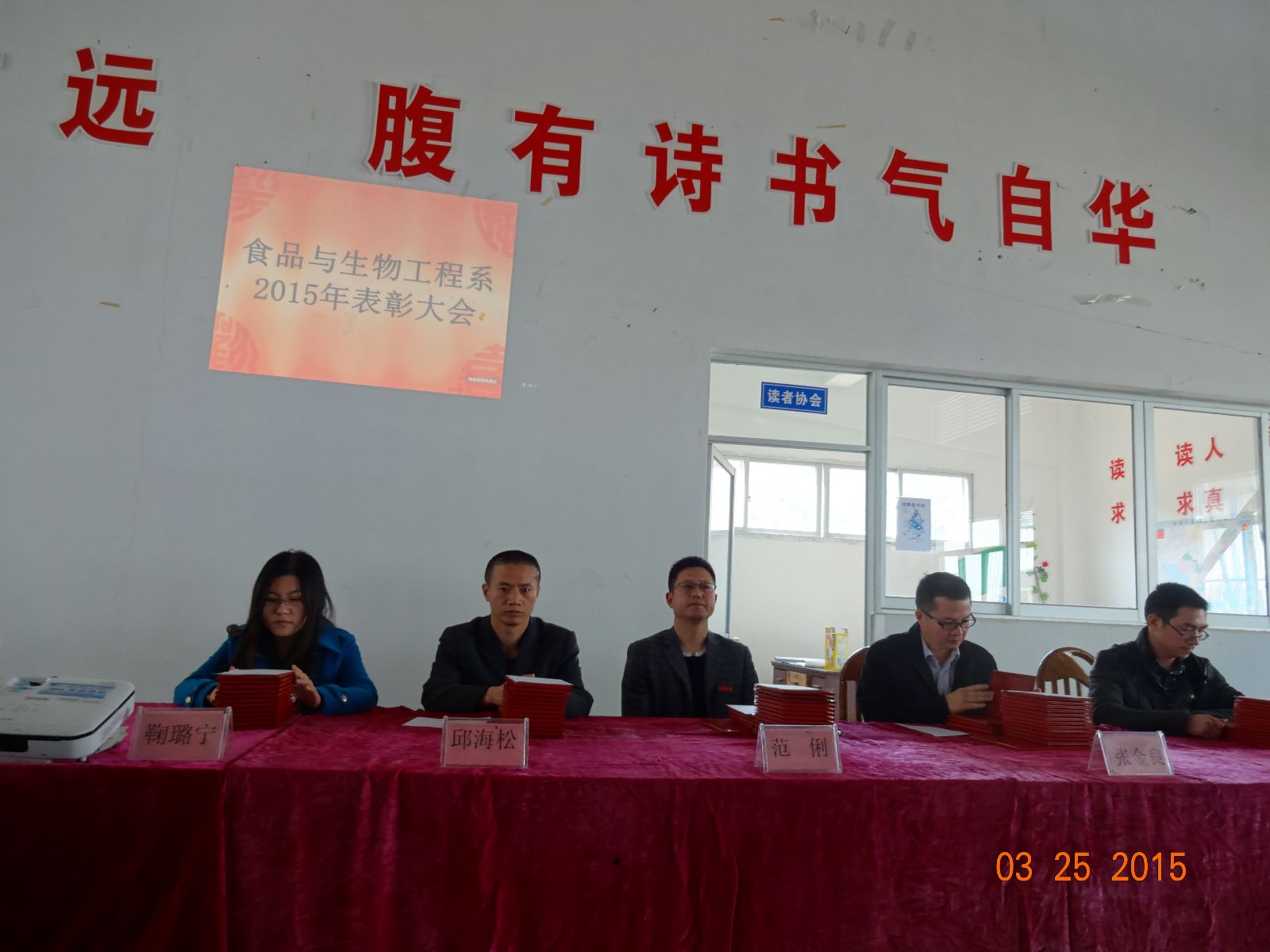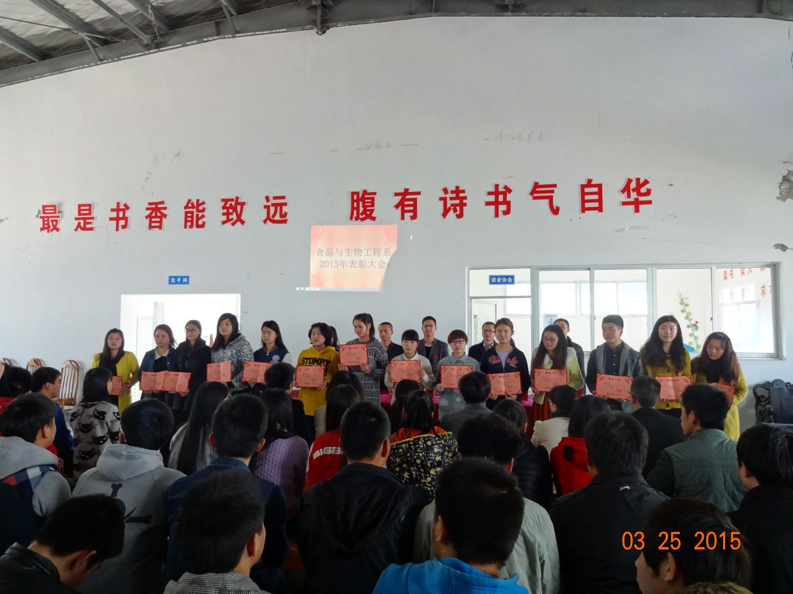 为表彰在2013-2014学年中品学兼优、各方面表现优秀的先进同学⏬,2015年3月25日下午,我系在图书馆阅览厅召开了2013-2014学年校级“三好”学生🤷🏿、优秀学生干部、先进班集体和校级奖学金表彰颁奖大会🌶🏄🏿,院长助理🛗、院招生与继续教育处副处长、系党总支常务副书记范俐👨🏼🚀,系主任、系党总支副书记张金良,系党总支委员🙇🏼、学生科科长邱海松😆,信息与工程系教学科研办公室副主任黄华,食品与生物工程系教学科研办公室副主任鞠璐宁出席了大会🫛💮,系辅导员🤷🏿、各班班主任及全系在校生参加了大会,会议由系辅导员张灵暄主持。大会上共表彰了三好学生3名,优秀学生干部6名,奖学金25名🔵,先进班集体1个。