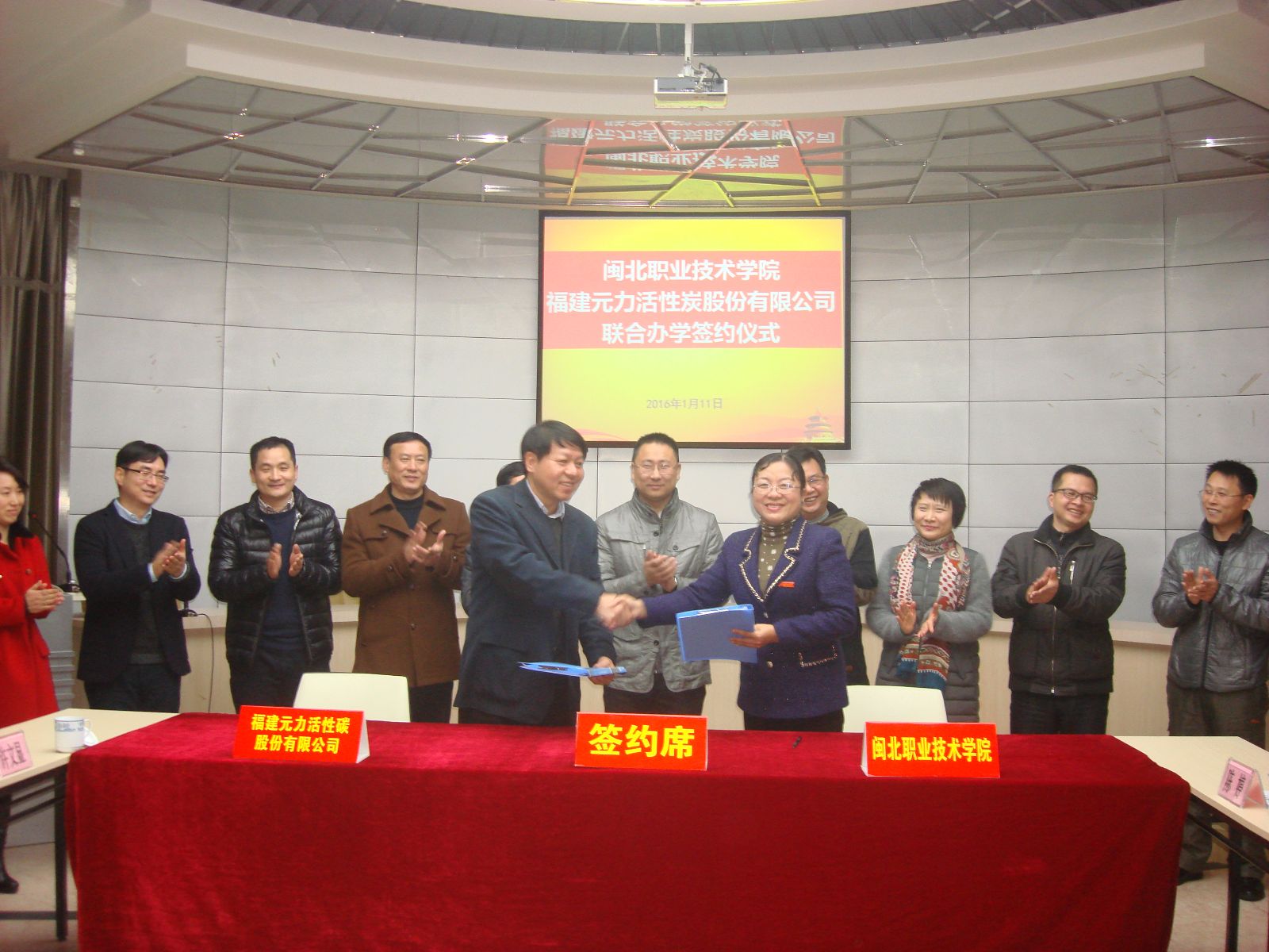 2016年1月11日下午🐡,学院与福建元力活性炭股份有限公司“元力订单班”签约仪式在学院一楼报告厅隆重举行。南平市延平区委常委张嘉明🫏,延平区教育局局长黄敏👩🏼🍳、区政府教育督导室主任🥵👩🦳、区教育局副局长林进🌈、我院院长黄亚惠🙇🏽、福建元力股份公司总裁官伟源,元力公司副总裁许文显、行政总监郑超凡级我院教务处、实训与就业处🙍🏽、食品与生物工程系等相关部门负责人参加了签约仪式。