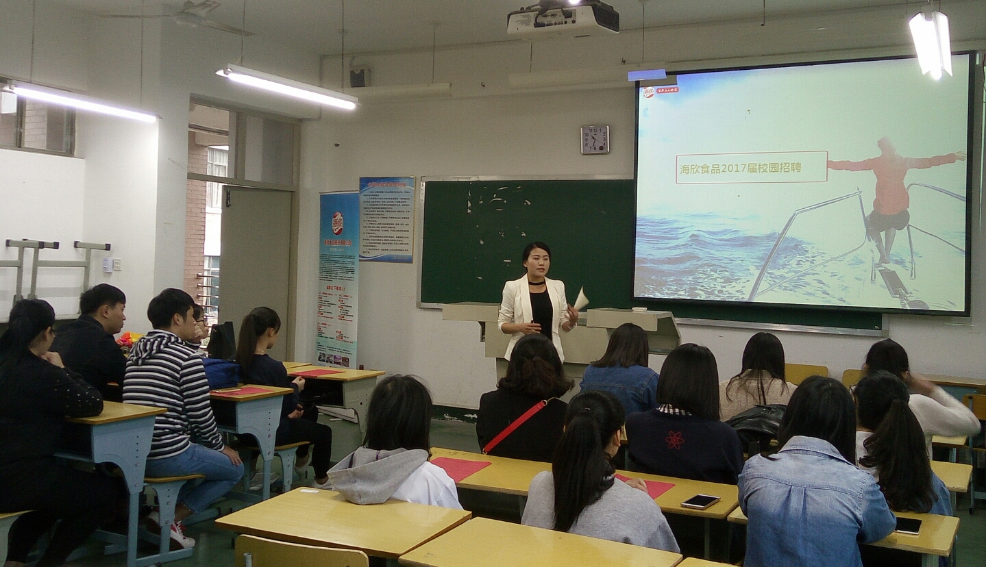 2016年11月9日,海欣食品股份有限公司到我系召开专场招聘会。企业招聘人员首先就公司概况、行业状况,岗位要求👏🏽、职业发展前景等进行介绍,后与同学们进行了积极的互动。在精心的组织下本次招聘会取得了良好的效果🙆🏽♂️🧜♀️。