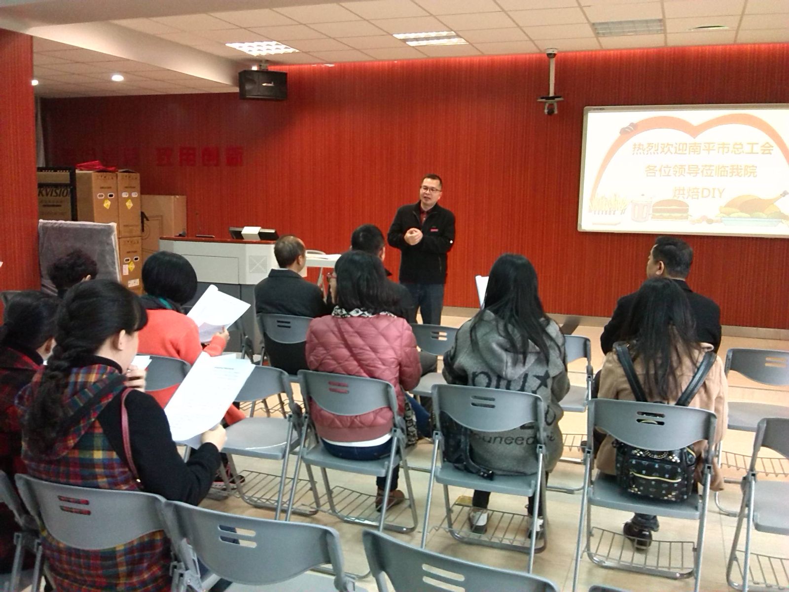 2016年12月2日上午,南平市总工会林安顺副主席一行到我院指导工作🚣🏼,院工会陶金辉主席陪同市总工会领导参观了校园并介绍了我院基层工会的工作情况👨🏽‍🚀,随后市总工会领导一行来到了我系烘焙实训室考察指导🤰🏿,他们肯定了我系烘焙实训室的建设及学生取得的成绩,他们与我系正在烘焙生产实训的学生一起进行了现场烘焙体验,反响热烈。陪同现场考察的领导还有院工会郑定华副主席、我系张金良主任等。