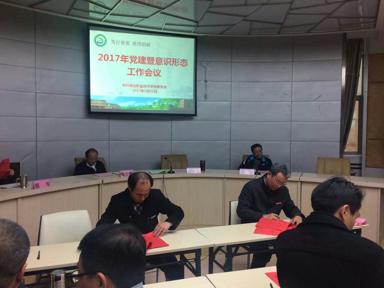 3月31日下午,我系领导参加了学院2017年党建暨意识形态工作会议。会议由纪委书记姚荣同志主持,党委副书记陶金辉同志对2016年我院的党建工作进行了总结,对2017年的党建及意识形态工作进行了安排部署。院党委高建富书记作了做好2017年党建及意识形态工作的讲话,高书记在会上提出三点要求:一是要认清形势,准确把握从严治党的新要求;二是要突出重点,努力提高我院党建与意识形态工作水平🏏🛸;三是要强化责任🙂↕️,积极推进党建与意识形态工作。会上👨🏼🔬,高书记与我系党总支签订了2017年学院党建工作责任书🕚。我系领导认真领会会议精神👩🏽🍼,准备在第一时间将本次大会的精神传达给教师🍤,引导广大教师积极投身到我院的迎评创建工作中🏚🧔🏿♀️。参加本次会议有系张金良主任🥳🕉、总支常务副书记郑启阶及其它总支委员等。