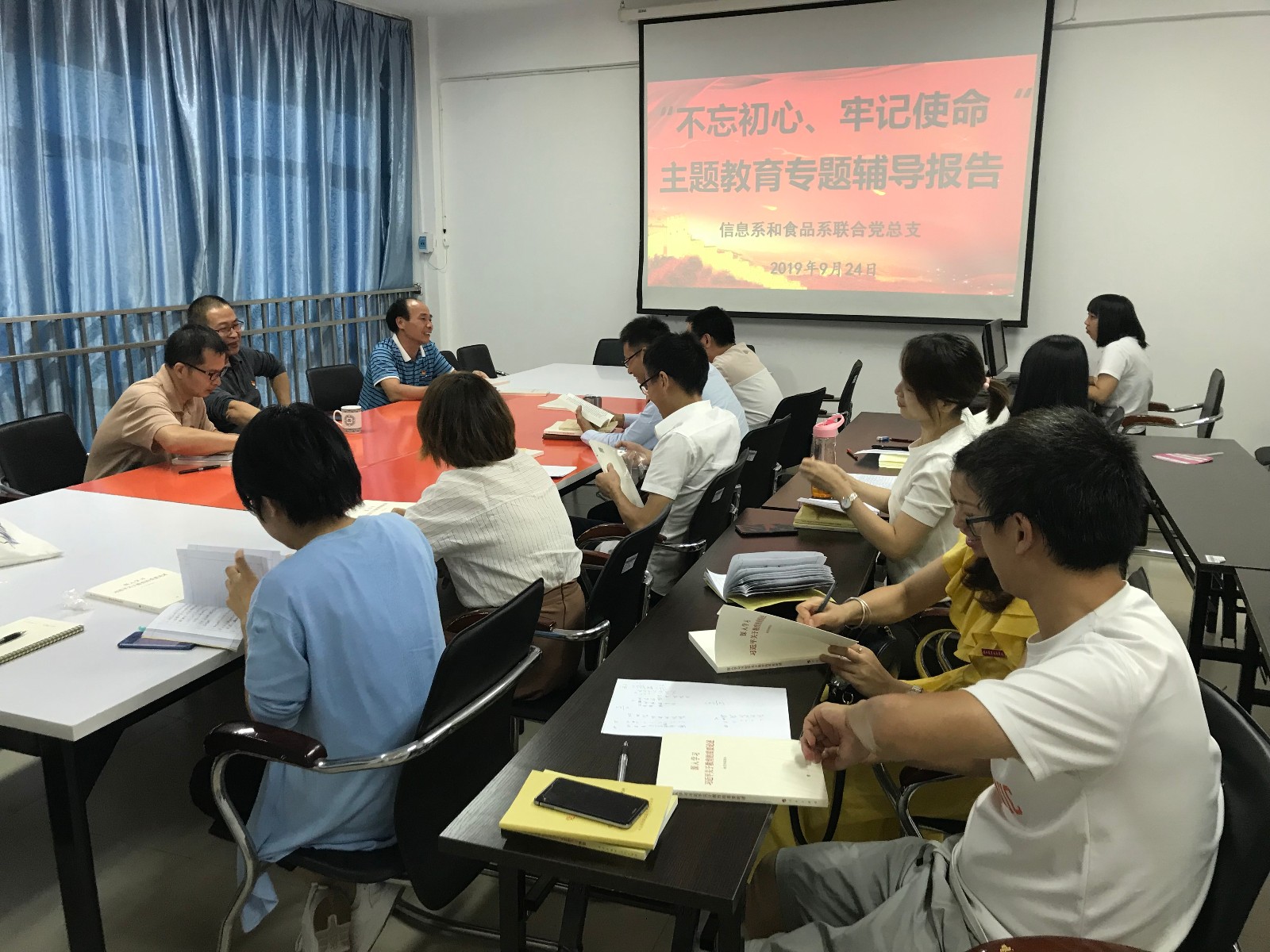信息系和食品系联合党总支开展“不忘初心、牢记使命”主题教育专题辅导
