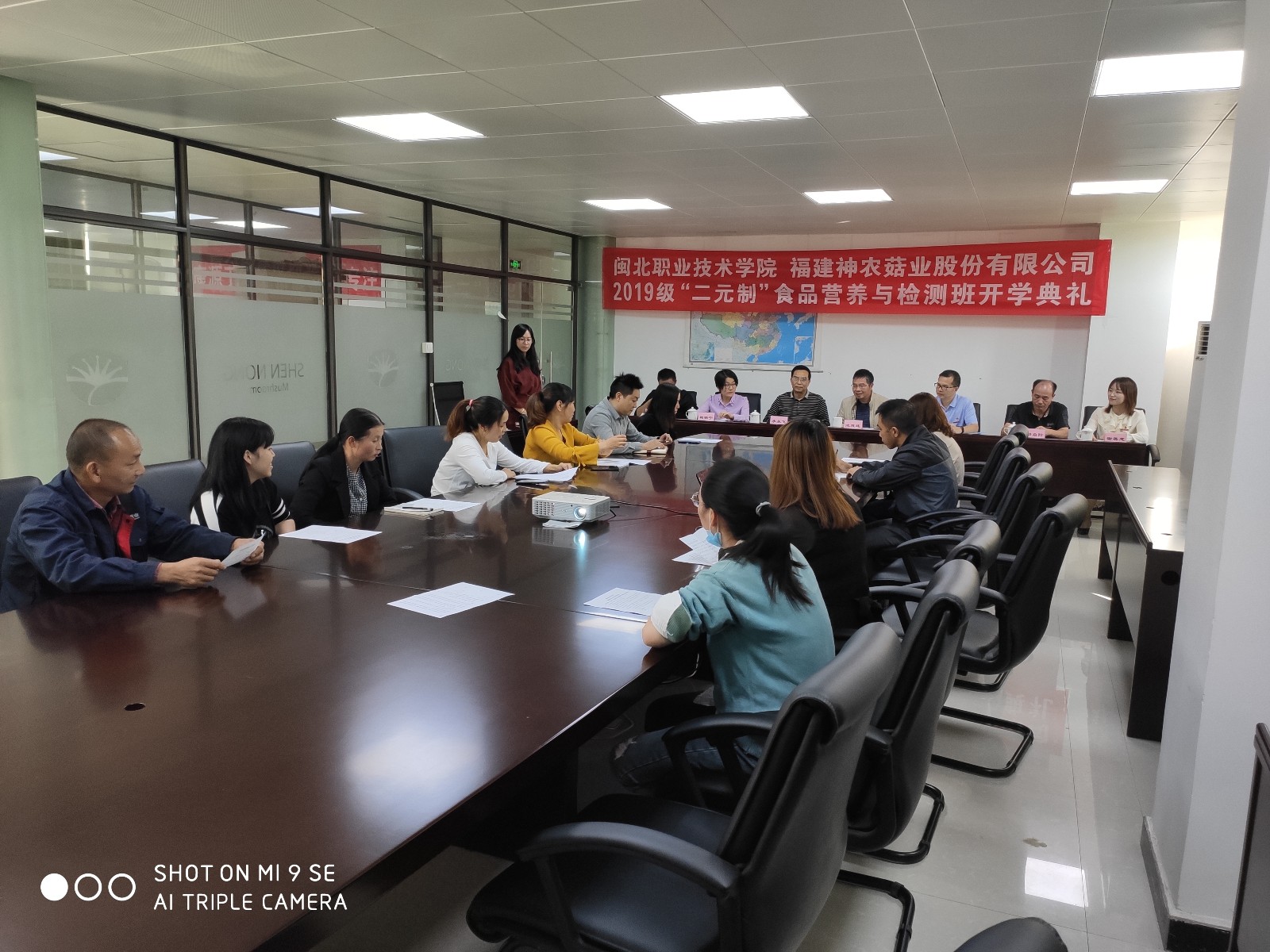 10月22日下午,我系携手校企合作企业福建省神农菇业股份有限公司隆重举行2019级“二元制”食品营养与检测班开学典礼✔️。活动在神农菇业公司举行,我系党政领导、顺昌县科技局领导💃、神农菇业公司领导及“二元制”班级全体学生参加了典礼。