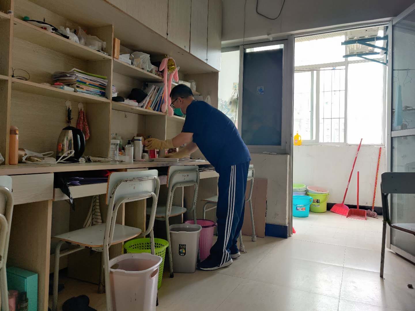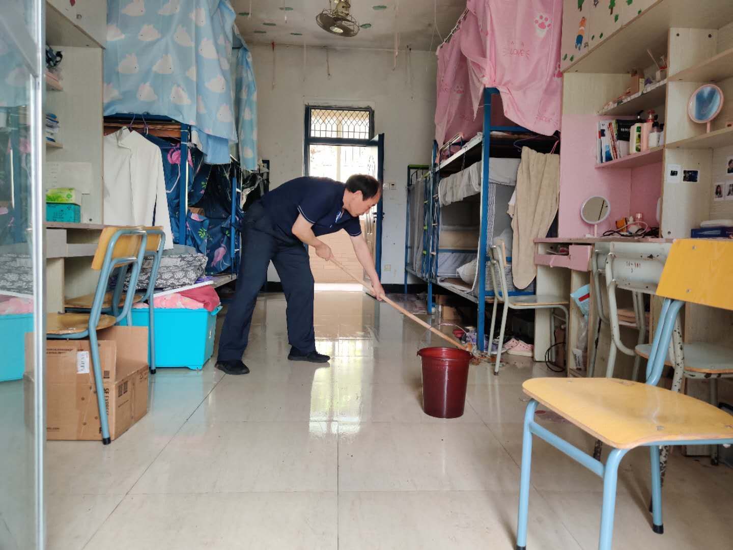 有的老师为了不影响白天的工作,天刚刚亮就起床为同学们清扫擦洗宿舍;有的老师忙到中午忘记了吃饭依然开心地拖着地板,就像为他乡求学的自家孩子整理行囊;有的抱着即将霉变的被子、草席疾步冲到天台,就怕太阳被云遮盖。老师们辛勤地耕耘者、爱护着,始终把学生的健康摆在首位。