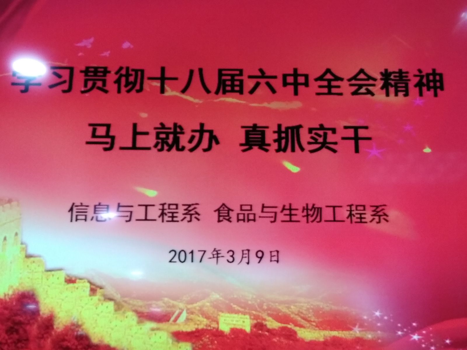 2017年3月9日,我系召开了“学习贯彻十八届六中全会精神,落实马上就办👨🏻🚀、真抓实干”全系教工大会。会上,系党总支常务副书记郑启阶同志传达了院党委高建富书记在我院领导干部培训班上关于“学习贯彻十八届六中全会精神”的重要讲话,并就根据高书记的讲话精神👩🏼🏭,结合我系工作实际🙀,对我系下阶段“继续做好课程说课工作”👨👩👦👦、“做好优秀毕业生跟踪工作”等八个方面的工作进行了部署。郑副书记同时强调,系部工作应以学院二轮评估为中心,扎实稳步推进党建工作及党风廉政建设工作🤾🏻。最后,张金良主任对我系下阶段的工作做了总体安排部署💷,对二轮评估工作提出了很好的建议🙋🏿♀️,要求大家积极参与、全心投入🆗、马上行动,切实打好迎评创建攻坚战,以优异的成绩接受领导、专家的检阅。