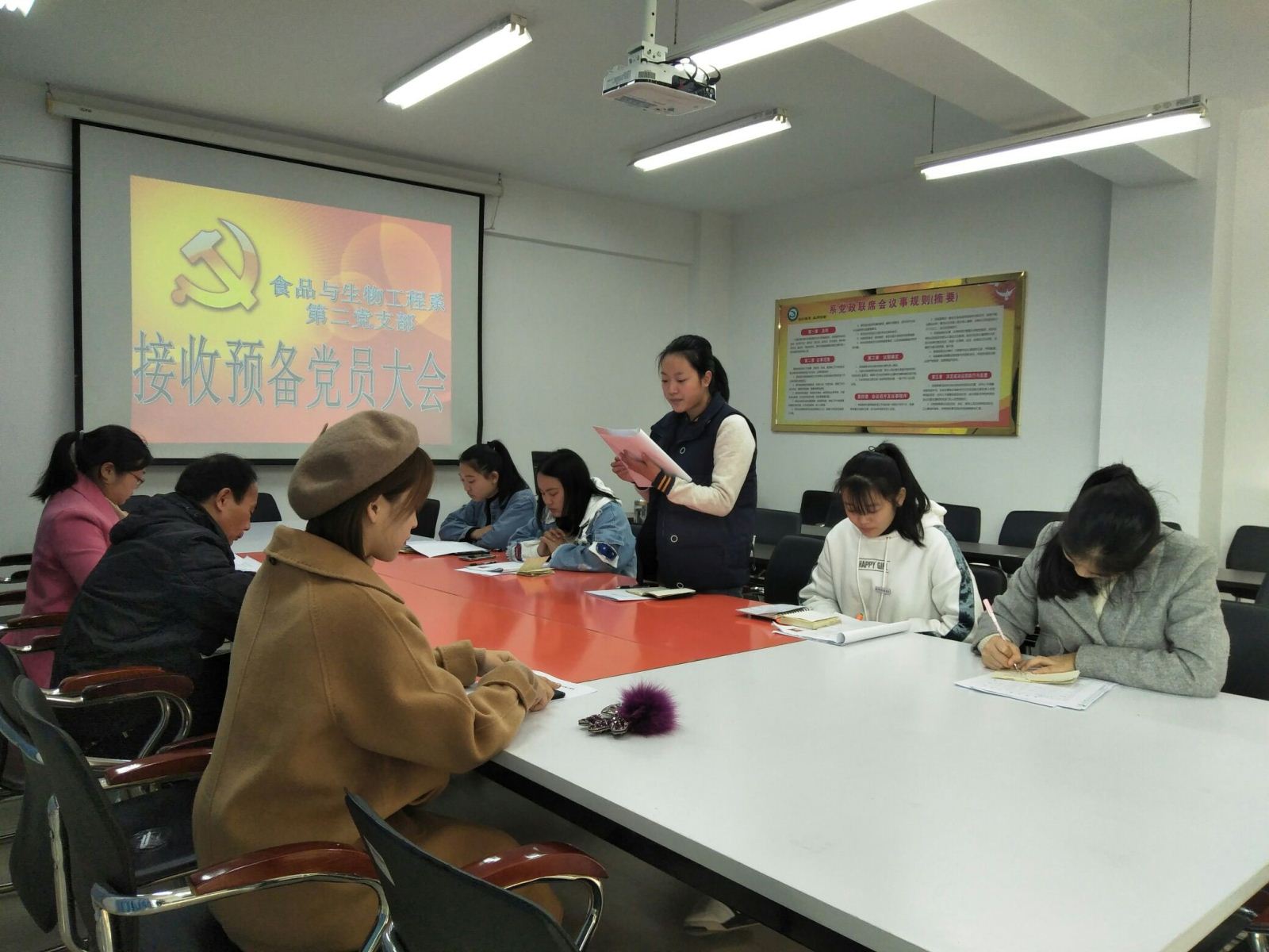 食品与生物工程系第二党支部于二0一八年一月二日下午两点三十分👩🍼,在行政楼407会议室举行了接收预备党员支部大会。党总支部郑启阶书记以及食品与生物工程系第二党支部全体党员🚖👏🏽、发展对象参加了此次会议。会议主要讨论了是否接受廖红珍、李 虹、曾小芸、曾巧艺等4位同志为中共预备党员的问题🤘🏽🫳🏻,大会由食品与生物工程系第二党支部黄妍书记主持。