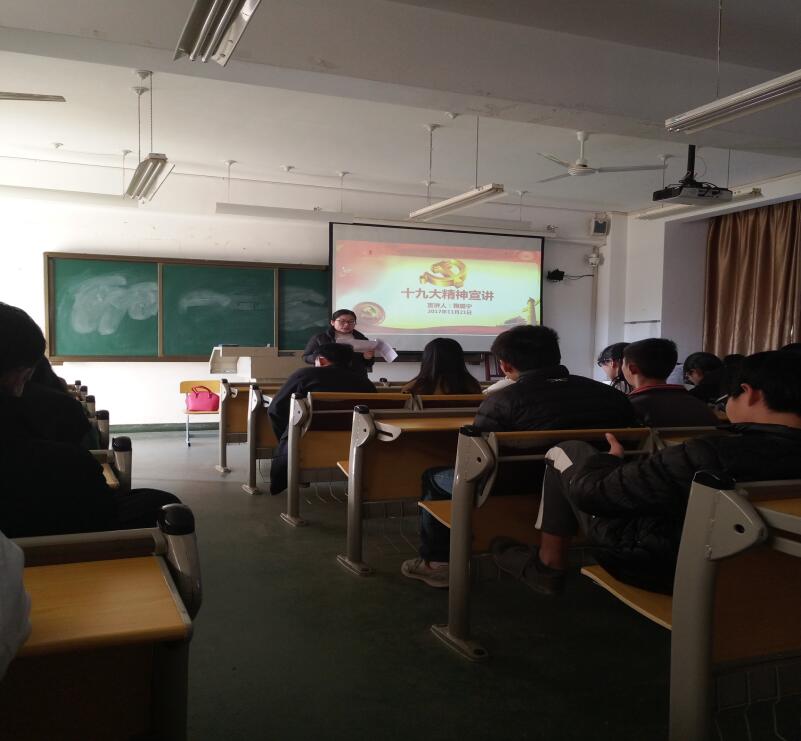 12月20日下午,食品与生物工程系第一党支部召开了党的十九大精神宣讲主题班会,2017级食品(高职)班与2015级食品(五年专)班全体学生参加,鞠璐宁书记作了宣讲。她从十九大大会主题、历史成就、习近平新时代中国特色社会主义思想、关于两个一百年奋斗目标的战略部署等十个方面进行了宣讲,号召全体同学要以时不我待、只争朝夕的精神,奋力走好新时代的长征路。通过宣讲,同学们对党的十九大精神有了更深刻、更全面的认识,纷纷表示要立足当下,好好读书,回报父母,报效社会。