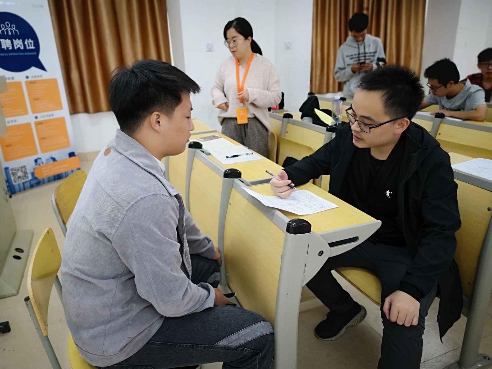 招聘会现场秩序井然、人头攒动,热烈的气氛还吸引了很多非毕业班的学生前来驻足聆听,提前了解企业招聘流程及要求。同学们也向各公司负责人咨询了一些与未来工作相关的实际问题🚵🏼,并得到了满意的回答。最后有意向的同学向企业投递简历,进行面试。