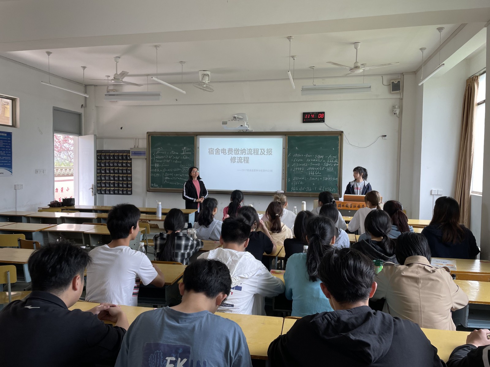 为了便于学生更好的掌握宿舍电费缴费及宿舍报修流程,4月7日我系组织开展了以上工作的班会宣传活动。