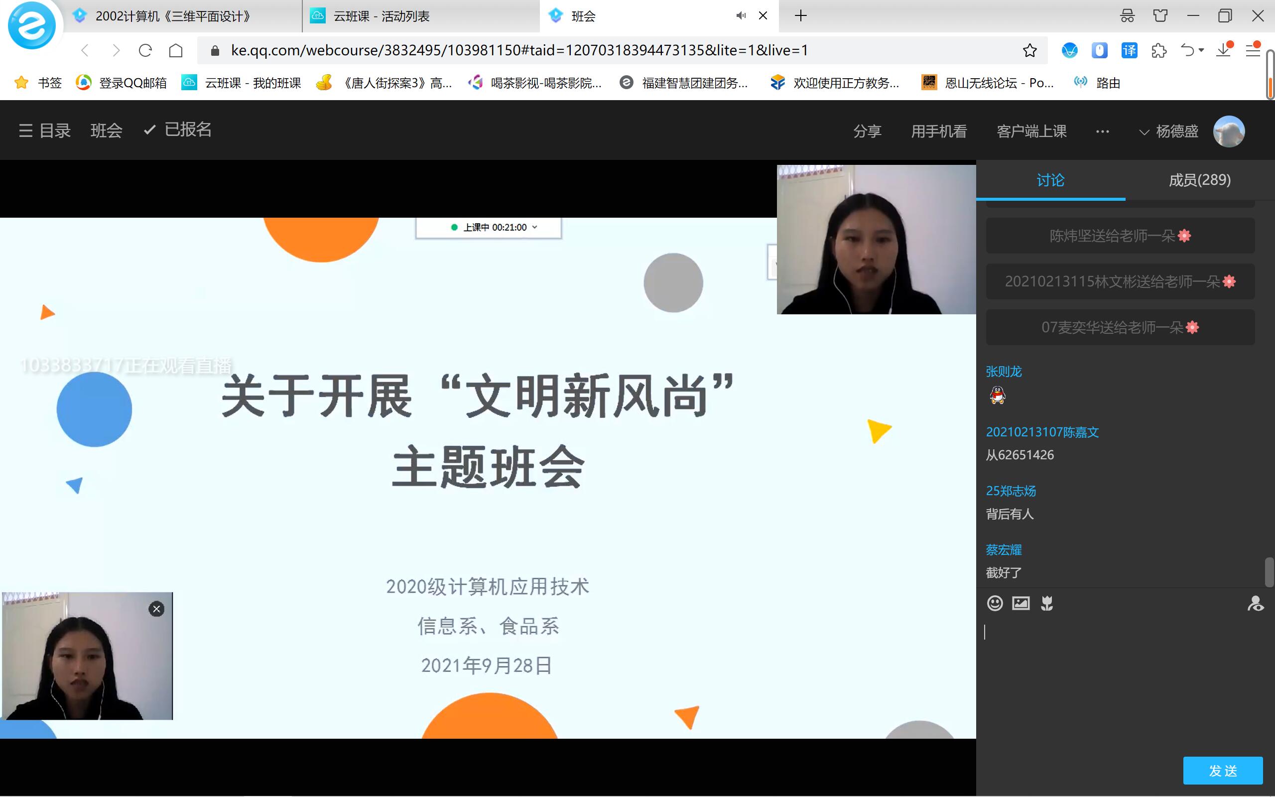会上👨🦰,辅导员组织同学们共同学习了南平市创建第七届全国文明城市、学院创建省级文明校园及大学生文明行为规范的相关通知内容🧒🏽,并结合实际对我系学生常出现的一些不文明行为进行提醒规范😳,及时摒弃不文明行为🤦♂️,争做校园文明的践行者,共同推进校园文明建设🍄🟫👽。