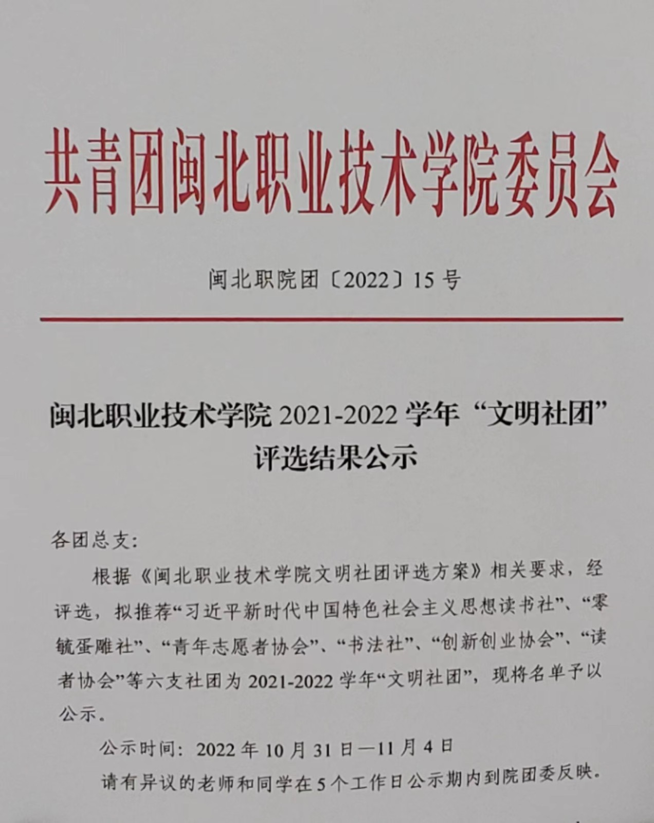 采彡争霸2021-2022学年“文明社团”评选结果公示