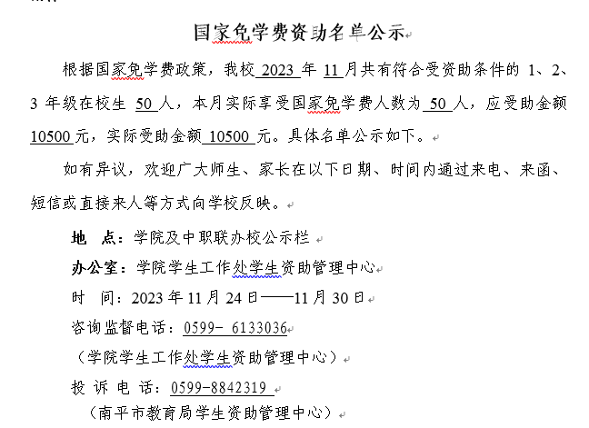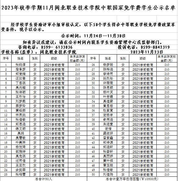 2023年秋季学期11月采彡争霸中职国家免学费学生公示名单