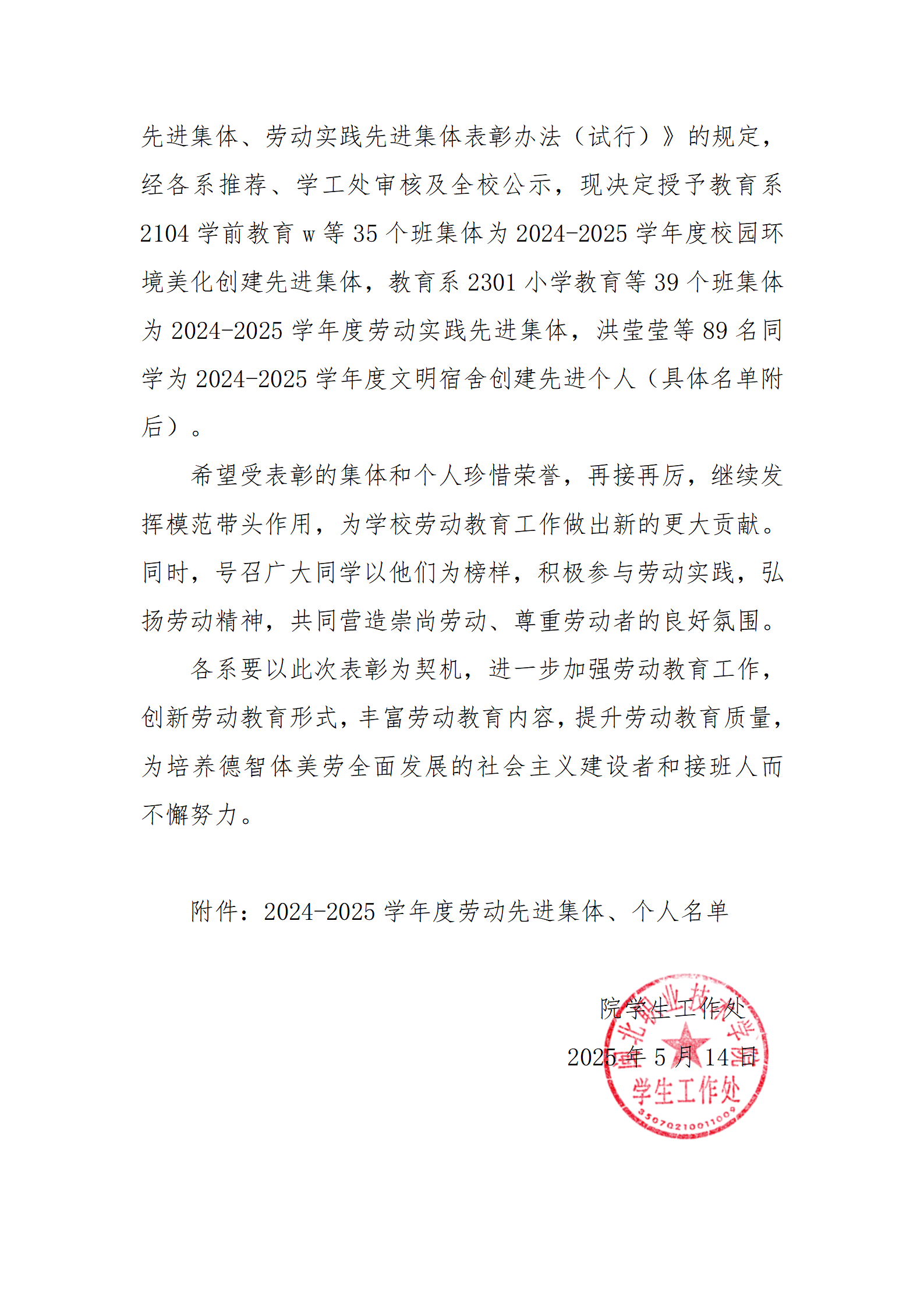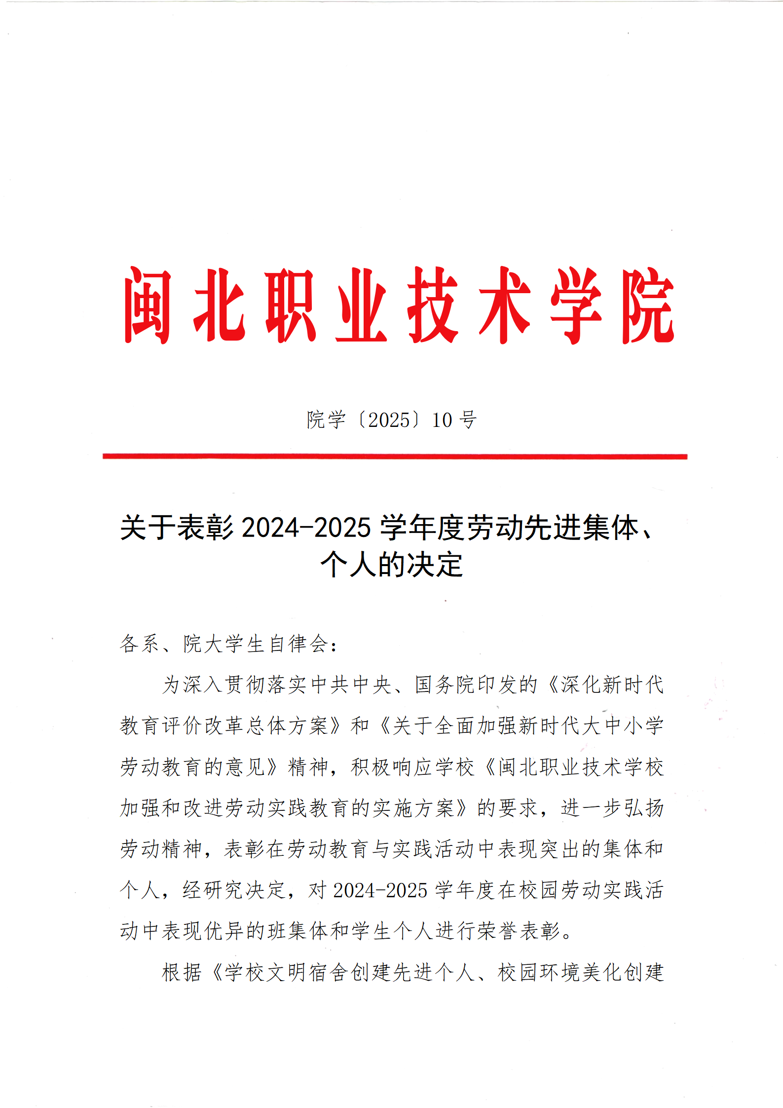 关于表彰2024-2025学年度劳动先进集体🖖🏿、个人的决定