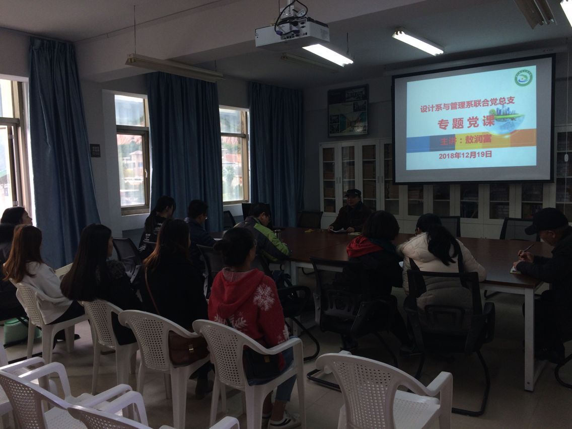 12月19日下午,设计系和管理系联合党总支在行政楼310室⏱,举办专题党课讲座。设计系和管理系联合党总支常务副书记敖润富以《党员干部如何发挥模范带头作用》为题上专题党课,党总支全体成员聆听了此次党课。