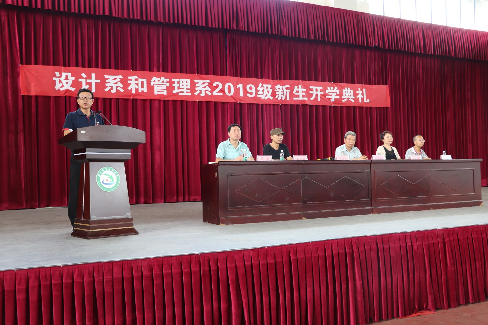 9月11日下午,设计系和管理系在体育实训中心举行隆重开学典礼欢迎2019级新同学。学院党委高建富书记👸🏿、设计系和管理系联合党总支詹茂光书记、设计系兼管理系陈婷主任、党总支敖润富常务副书记、教科办白雁飞主任、学生科负责人吴亮老师以及系辅导员👰🏼♂️、2019级新生班主任和2019级全体新生参加了开学典礼🥟🍿。大会由詹茂光主持。