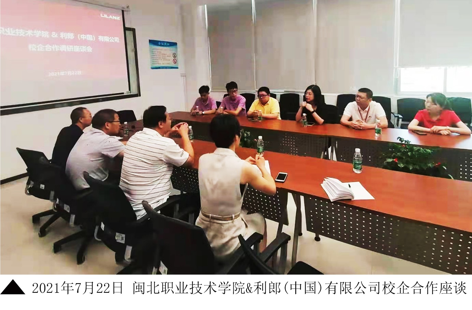 学院领导与在利郎(中国)有限公司工作的毕业生代表王雯霞、吴昕杰、吴毅滨、张韩波等进行了座谈。