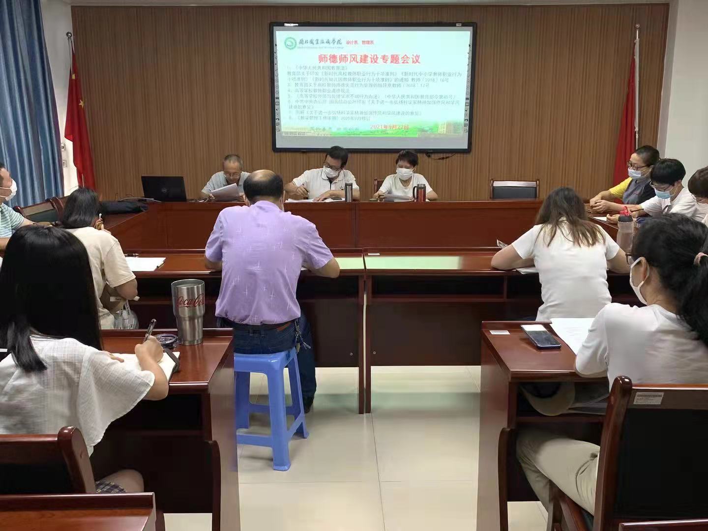 为进一步加强学校师德师风建设,根据学院的统一部署,设计系、管理系于2021年9月22日召开了2021—2022学年第一学期“师德师风建设”专题学习和教学有关工作会议。