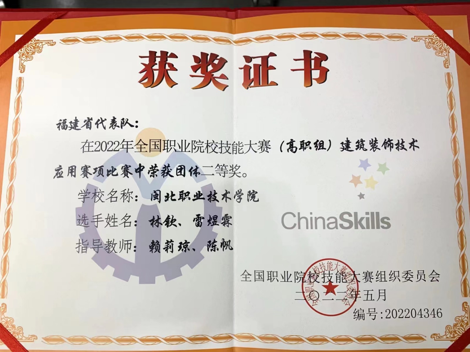 喜报 我系设计系建筑室内设计专业团队荣获2022年全国职业院校技能大赛建筑装饰技术应用赛项高职组二等奖