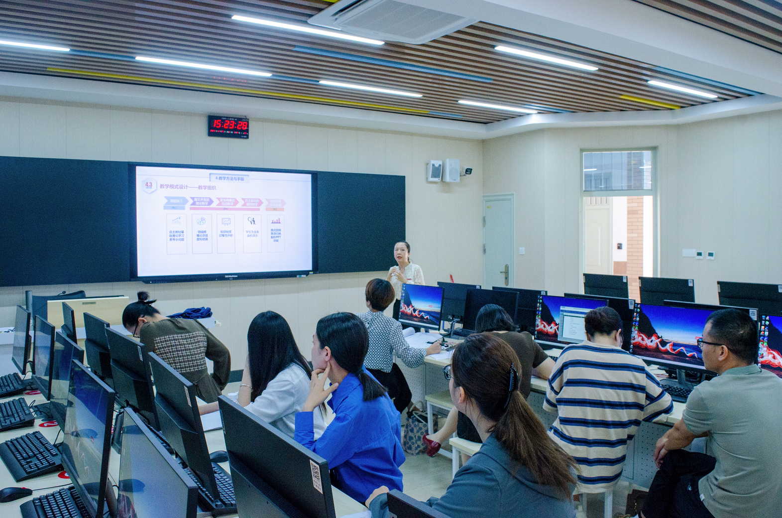 此次公开课和说课活动中,我系建筑室内设计专业陈帆老师结合国赛相关标准,选取了装饰板材这一章节,采取讲授🍟🛐、动画、微视频、提问、抢答、学生分析⛷、翻转课堂等向学生介绍了常见的六种板材以及板材制成橱柜后的安装工艺流程😪,以及培养学生的沟通表达能力。课堂氛围活跃💂🏽♀️,松驰有度🤸🏻,师生互动良好🧑🏽⚕️。向学生教授知识的同时👨🏽✈️,融入职业素养的教育,引导学生树立正确的职业观💸。