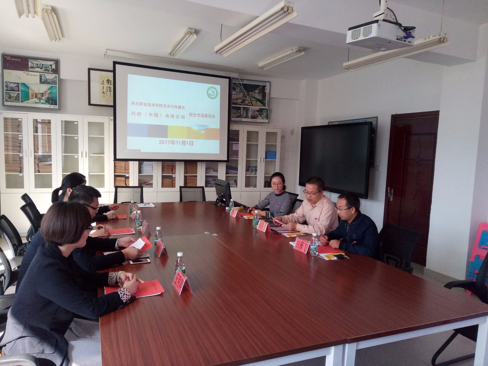 2017年11月1日下午,利郎(中国)有限公司总裁办陈佳主任一行4人到我院艺术与传播系考察交流工作🏇🏿。在校企交流座谈会上,艺术与传播系党总支书记、主任郑需勇向陈佳主任一行到来表示热烈欢迎,向客人介绍了学院以及艺术与传播系的基本情况,并就“二元制”项目的合作谈了自己的看法💂👩🏿🦳。总裁办陈佳主任🤳🏽、人力资源行政部经理柯荣欣在会谈中表示,愿意积极配合学校在“二元制”项目进行深入合作。校企双方就下一步的合作达成了广泛的共识🦝。座谈会后🧘🏼♀️,利郎(中国)有限公司举行了一场企业专场招聘会,向到场的届服装与服饰专业学生详细介绍了利郎(中国)有限公司的招聘计划和招聘条件,欢迎同学们加入利郎(中国)有限公司这个充满活力和发展潜力的团队。利郎(中国)有限公司总裁办陈佳主任一行还在我系服装与服饰设计专业负责人江丽君老师陪同下参观了艺术设计综合展厅、服装生产实训室等场所🧻。期间,我院黄亚惠院长与陈佳主任一行进行了亲切友好的交谈。