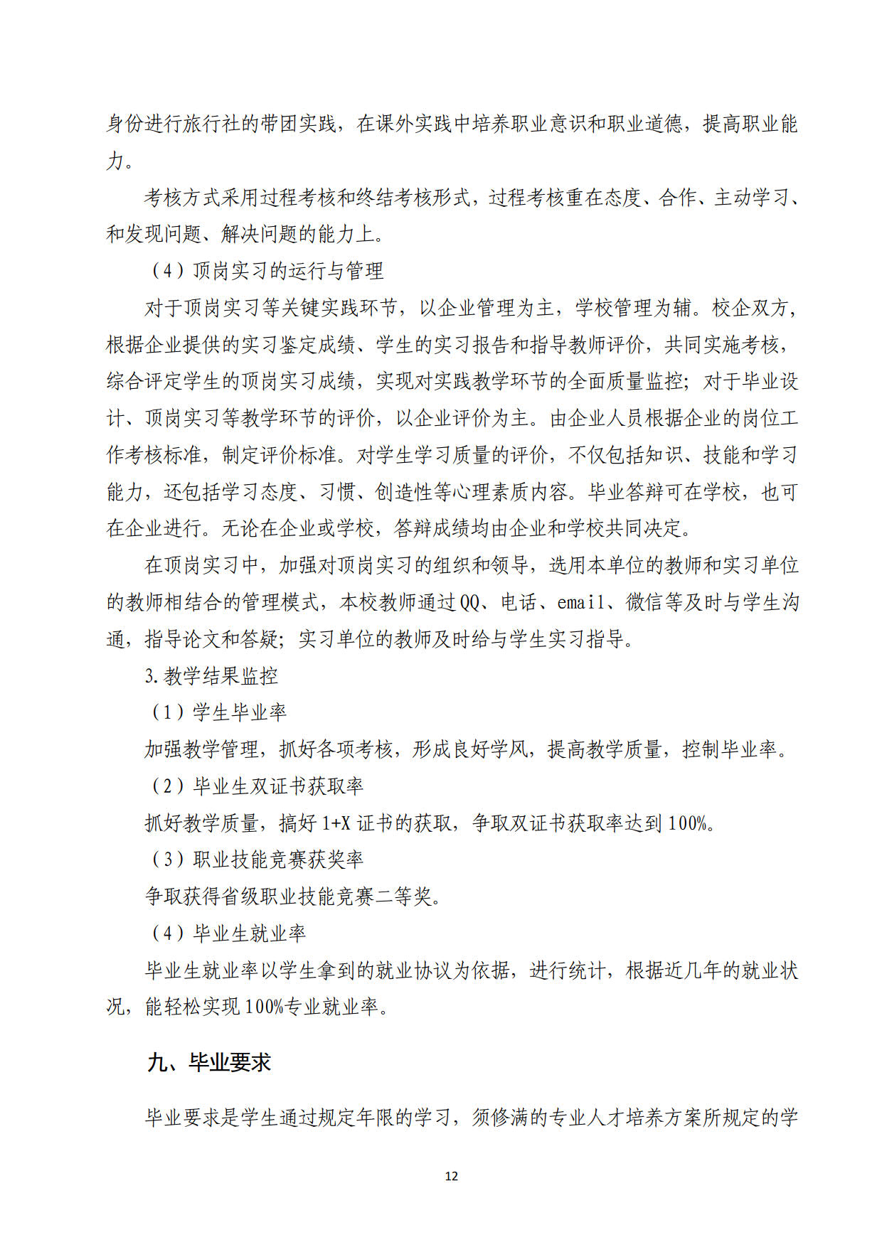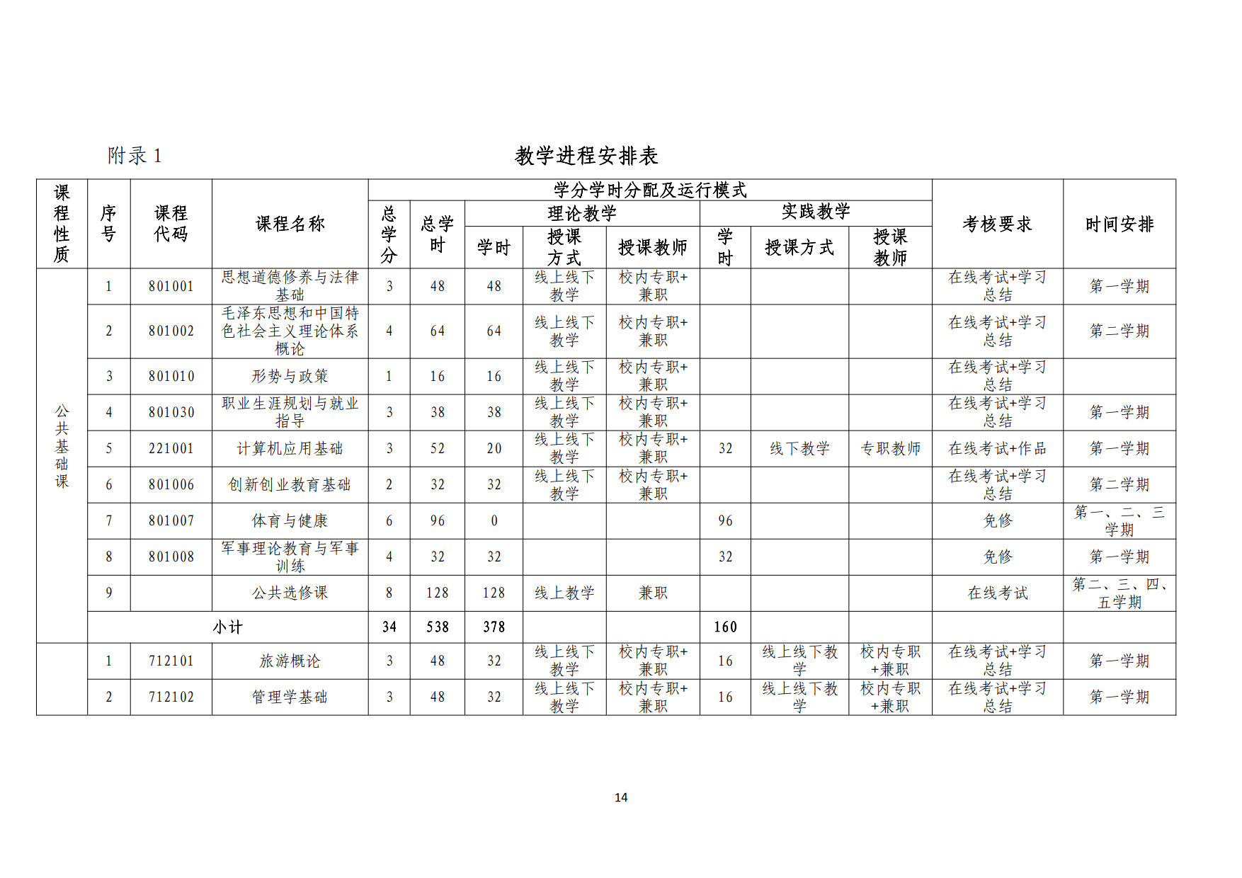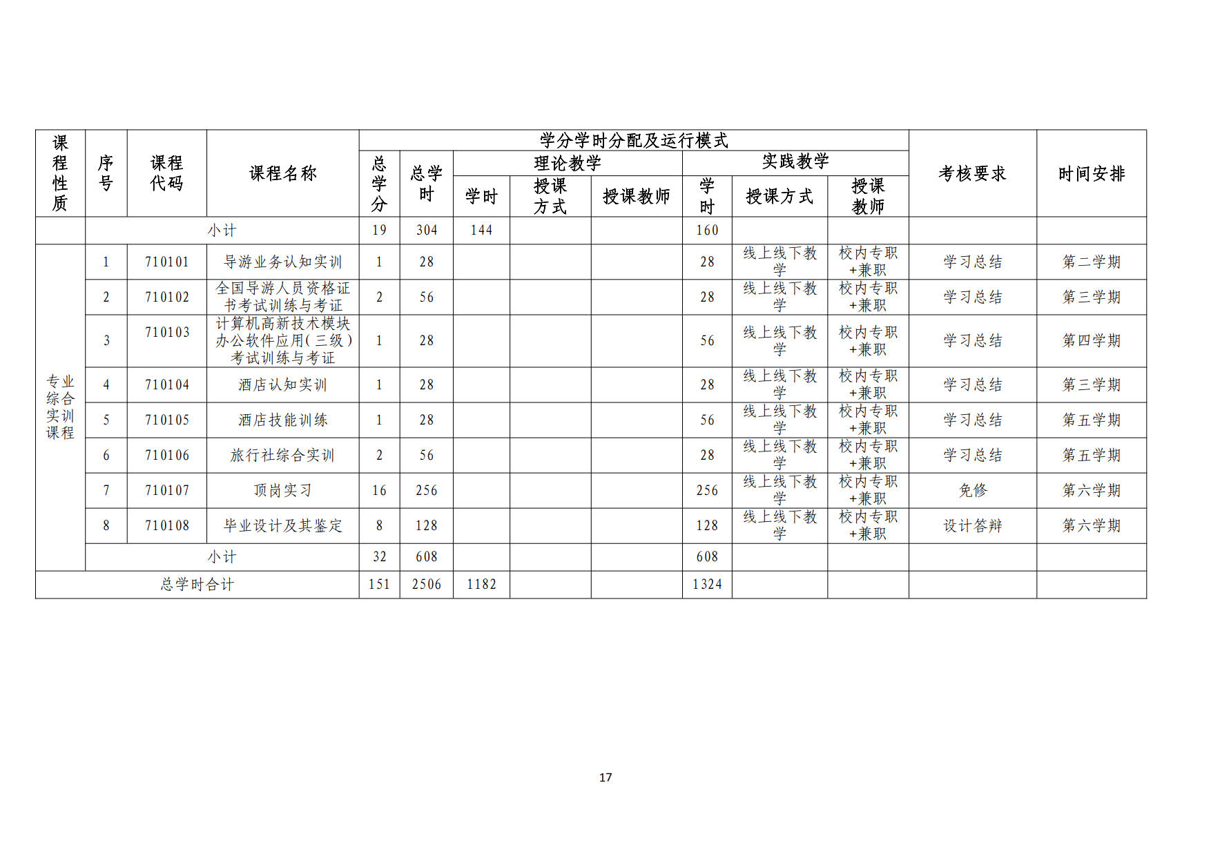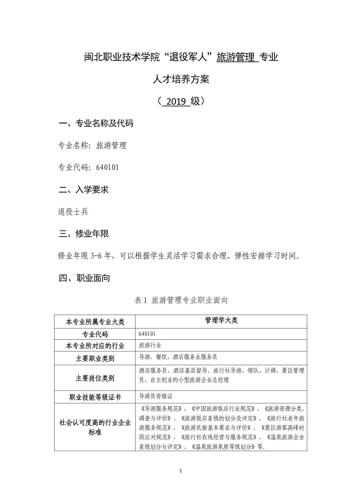 2019级“退役军人”旅游管理专业人才培养方案