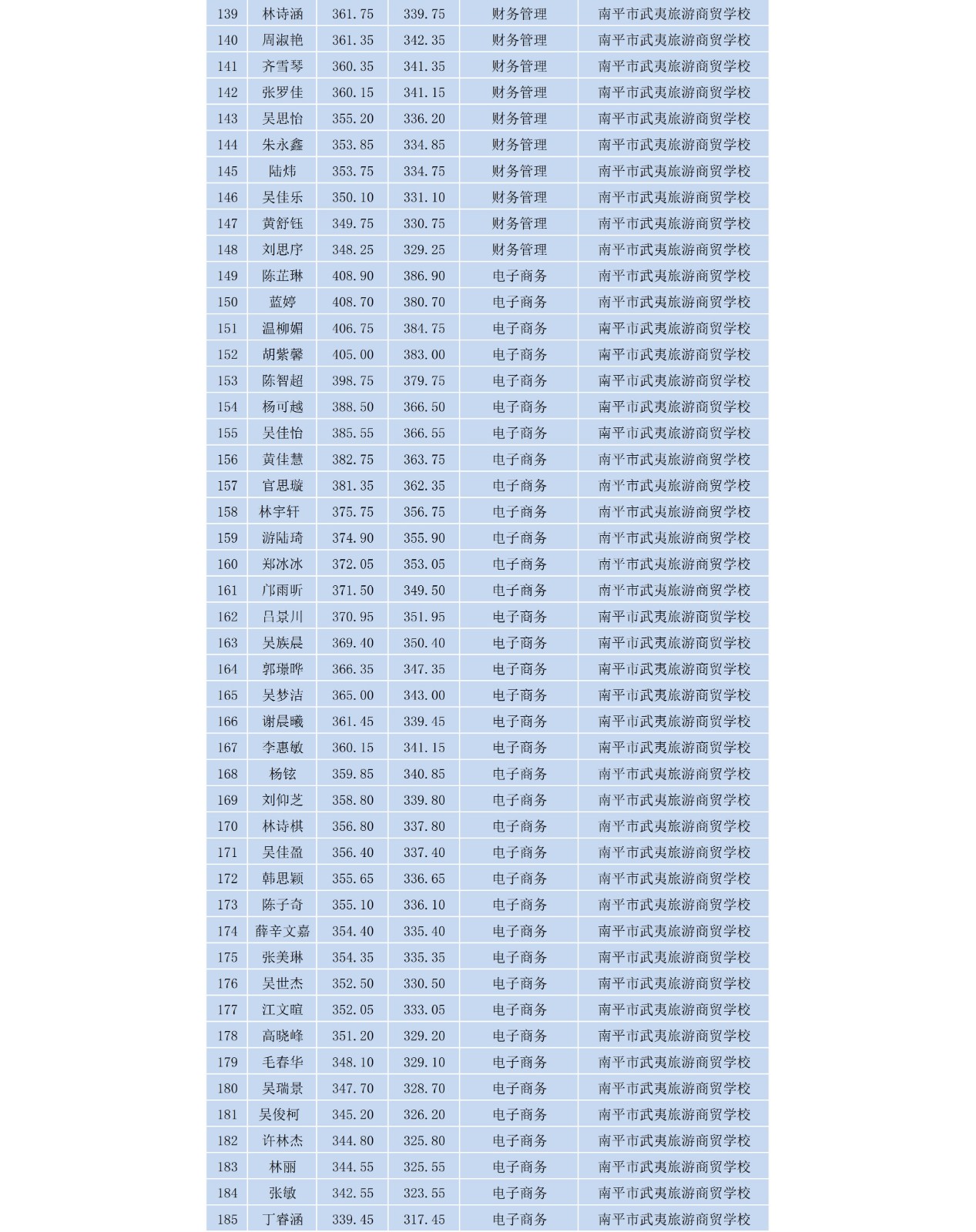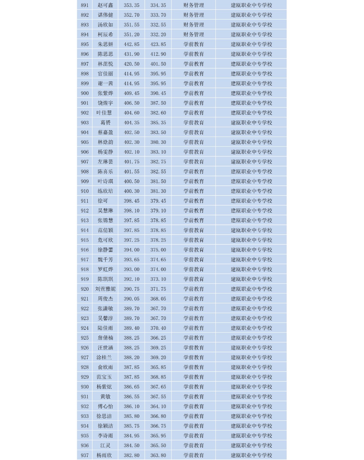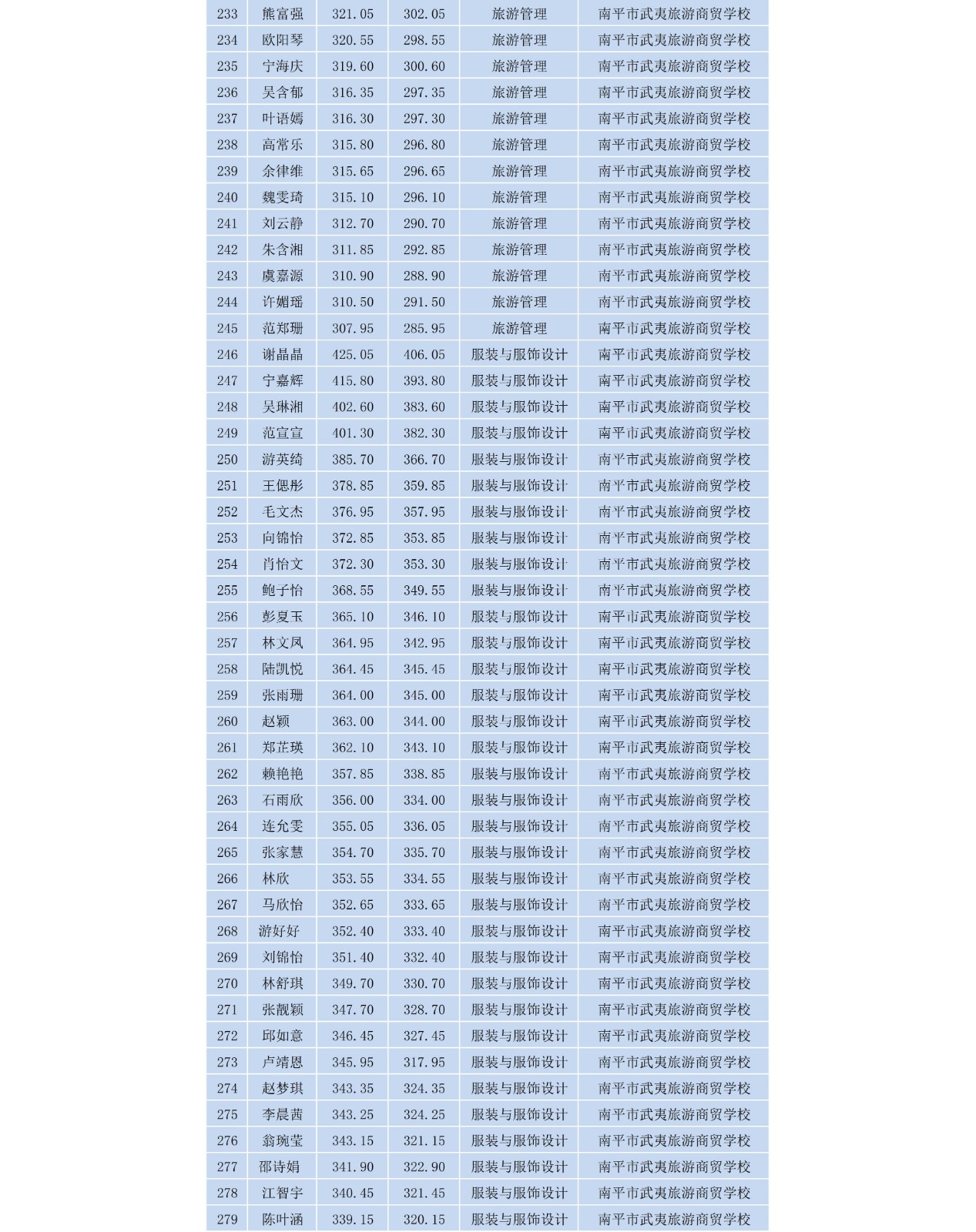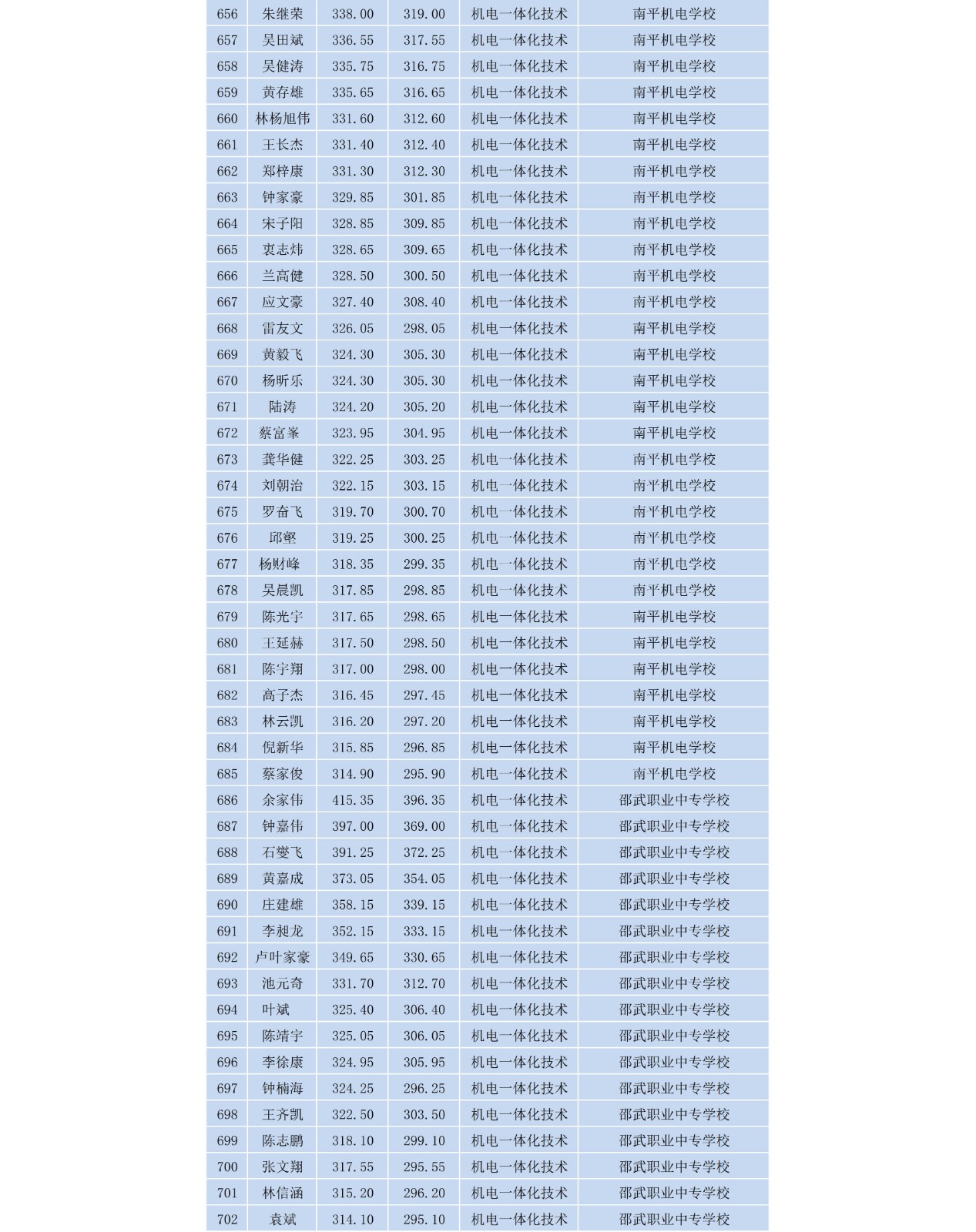 2020年采彡争霸五年制高等职业教育新生录取名单(南平地区)